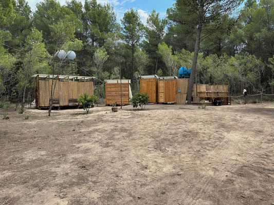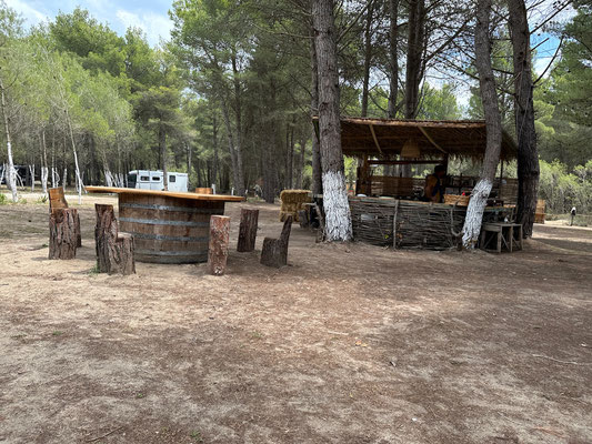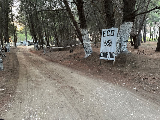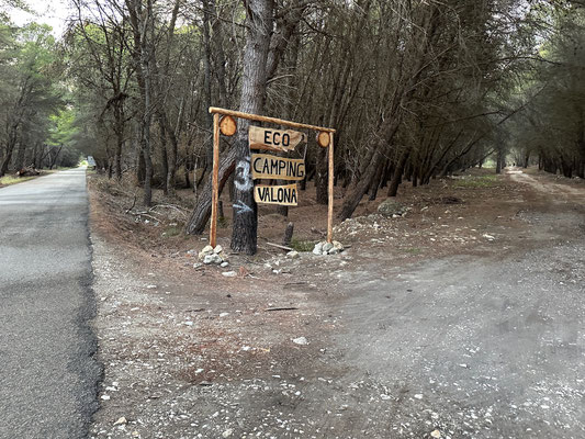 Ein paar Kilometer nördlich vom Stadtzentrum liegt auf einer schmalen Landzunge der Ecocamping Valona, schön mitten im Wald. Auf der einen Seite grenzt das Gelände des Campings an die Lagune und rund 500 Meter auf der anderen Seite dann das Meer. Nette Lage vom Platz. Die beiden Gastgeber Bess und Tony haben den Platz erst letztes Jahr eröffnet und da freuen wir uns natürlich sie zu unterstützen. Es gibt Openair WC und Duschen, Spülbecken und Küche, und quer über den Platz verteilt Steckdosen um das Womo anzuschließen. Uns gefällt es spontan echt gut hier.