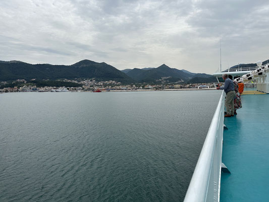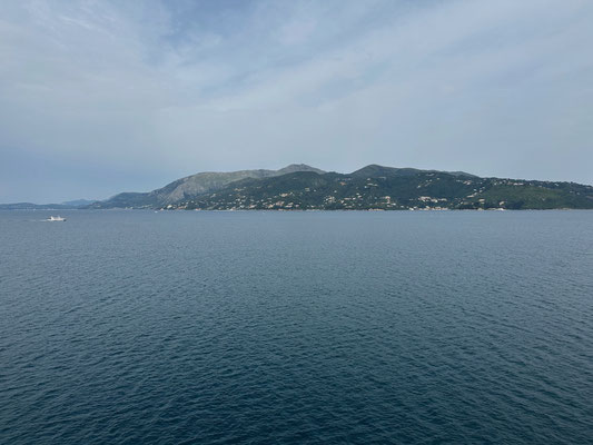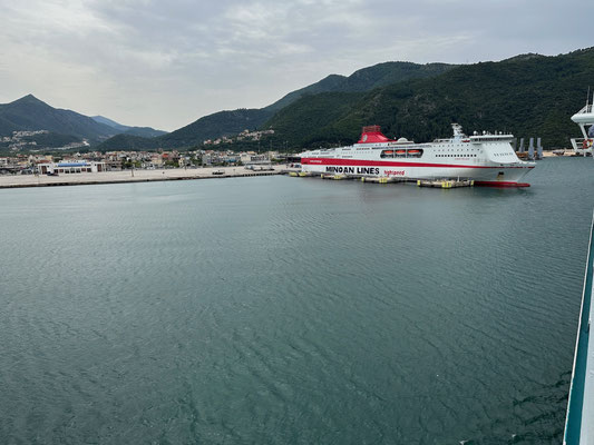 Mittags legen wir dann im Hafen von Igoumenitsa an. Immer wieder spektakulär, wie diese großen Fähren eine 180 Grad Drehung machen und dann rückwärts anlegen. Das Wetter ist bewölkt, bisher aber glücklicherweise kein Regen angesagt. Ursprünglich hatten wir ja mal überlegt noch ein, zwei Tage hier in Griechenland zu bleiben aber irgendwie zieht es uns weiter nach Albanien. Das ist so ein wenig, wie auf unseren Reisen nach Russland. Wir kommen mit der Fähre in Finnland an und irgendwie hat es uns immer direkt Richtung Grenze gezogen. Nur letztes Jahr haben wir tatsächlich eine Zwischenübernachtung in Finnland gemacht, kurz vor der russischen Grenze, aber das war der leider weiterhin aktuellen Situation geschuldet. Heute stellt sich ja nicht die Frage, ob wir wirklich in das Nachbarland einreisen wollen.