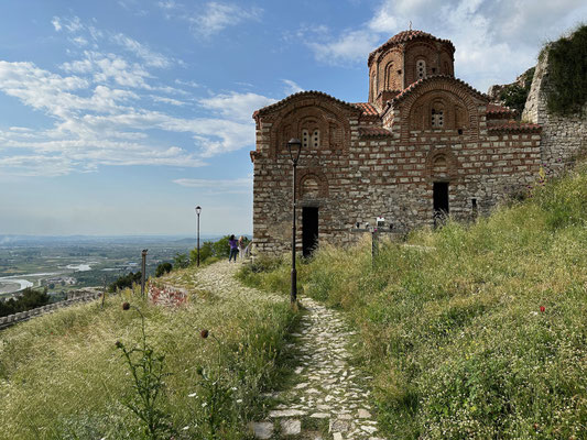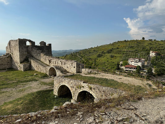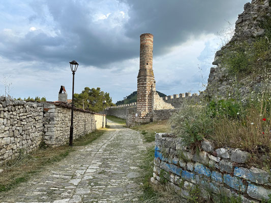 Während es sich Jens und Vanja auf dem Platz gemütlich machen, laufe ich noch eine Runde den Hügel nach oben um mir die Burganlage anzuschauen. Auch hier befinden sich die hübschen alten Häuser mit den vielen Fenstern, cooler ist allerdings tatsächlich der Blick von oben auf die Unterstadt. Da ist’s gar nicht mehr so schade, dass wir in der Osum Schlucht umgedreht sind.