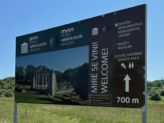 Unterwegs legen wir eine Pause im Archäologischen Park Apollonia ein (Wikipedia). Die Anlage befindet sich in der Nähe der Stadt Fier und kommen wir quasi automatisch daran vorbei. An der Autobahnausfahrt an der SH4 gibt es große Hinweisschilder, ebenso an der neu wirkenden Zufahrtsstraße.