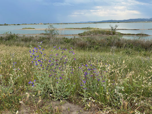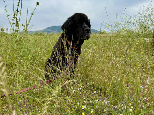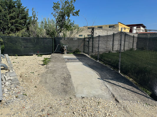 Und so geht es raus aus dem Hafengelände, immer gen Norden zur albanischen Grenze, welche nur 30 km entfernt ist. Auf dem ersten Schotterparkplatz im Grünen machen wir Pause und Vanja stöbert durch’s hohe Gras. Auf der Fähre war es übrigens super, dass Vanja mit auf die Außendecks durfte, eine „Sandkiste“ für ihr Geschäft haben wir allerdings schon vermisst.
