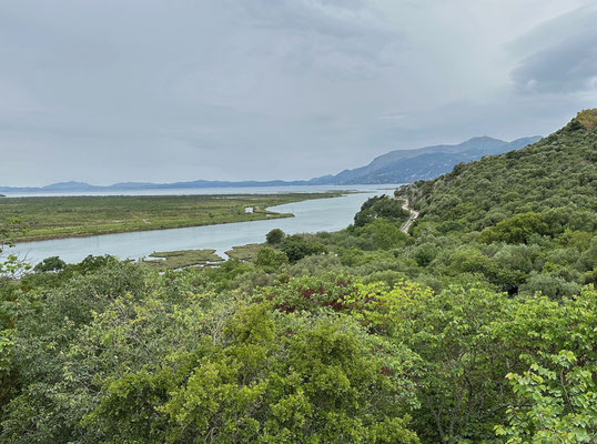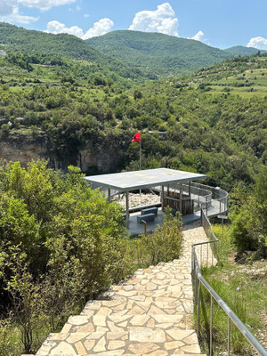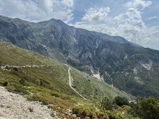 Wie wir ja schon in Ksamil und Himare festgestellt haben, herrscht hier ein Bauboom dank des Tourismus und dies ist auch hier vom Aussichtspunkt zu sehen. Unten an der Küstenlinie wird gefühlt eine neue Touristenstadt gebaut. Passend dazu wird aktuell auch ein Tunnel gebaut, welcher dann von Vlora aus kommend in der untersten Kehre des Llagora Pass endet und 2024 eröffnet werden soll. Um zügig voran zu kommen, sicherlich eine gute Alternative, wir würden allerdings den Pass sofort wieder fahren. Spannend ist auch der Kontrast zwischen des eher kargen Küstenabschnitts und oben geht’s weiter durch Wald mit zahlreichen Ausflugsgaststätten.