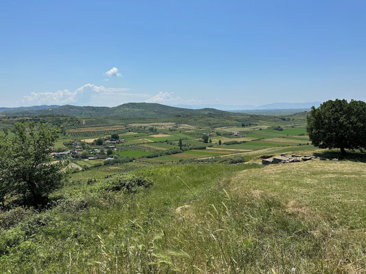 Kurz vor dem Grenzübergang in Mavromati (Lage GoogleMaps) suchen wir unsere Papiere raus und sind gespannt, wie lange es an der Grenze wohl dauert. Gut, einmal aussteigen, Papiere vorzeigen und innerhalb von zehn Minuten sitzen wir wieder im Womo. Damit hatten wir jetzt nicht wirklich gerechnet. Und wie erwartet sieht es jetzt auf der anderen Seite auch nicht so groß anders aus, zumindest landschaftlich. Dafür kommen wir an einigen verlassenen Tankstellen vorbei und mehrere Schafsherden kreuzen unsere Straße.