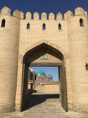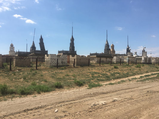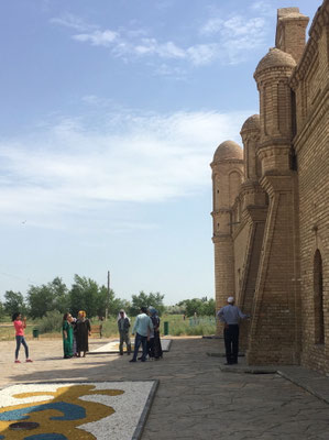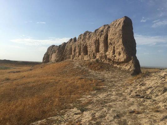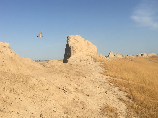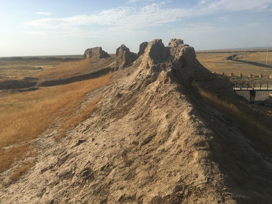 Als Nächstes besichtigen wir noch die aus Lehmziegeln gebaute Festung Sauran (der Abzweig befindet sich auf dem neu angelegten Parkplatz an der M32, einfach den Laternenmasten bis zur Eisenbahnunterführung folgen). Wenn wir nicht 40°C hätten, wäre es bestimmt spannend die mehr oder weniger noch erhaltene Festungsmauer einmal komplett abzulaufen.