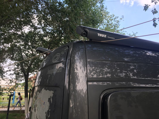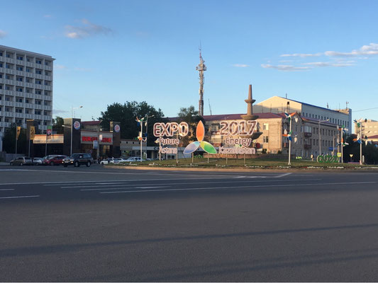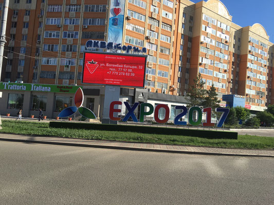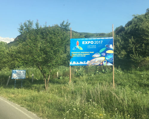 In Summe haben wir rund eine Stunde für beide Grenzen gebraucht und es war nicht wirklich schwierig. Die Fliegen waren schon das Nervigste. Nun sind wir in der Tat im Land angekommen, welches aufgrund der Expo 2017 unsere diesjährige Tour ausgelöst hat. Cool!