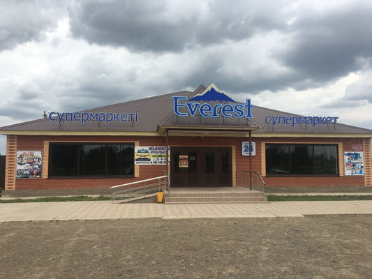 Highlight des Tages ist unser Großeinkauf im Supermarkt Everest im kleinen Ort Zhimpity. Die Landstraße führt direkt durch den Ort und somit ist der Supermarkt auch nicht zu übersehen. Dann machen wir noch eine kleine Dorfrunde und finden tatsächlich den Geldautomaten, ein Terminal um unsere SIM-Karten aufzuladen gibt es allerdings nicht.