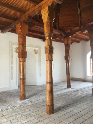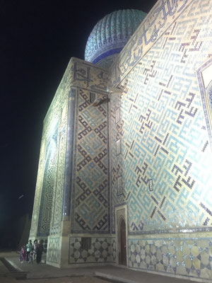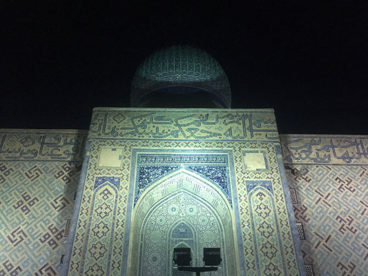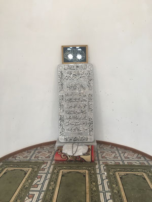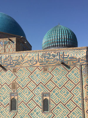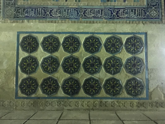Nach dem gestrigen Spätabendspaziergang ringsum das Mausoleum geht’s heute früh noch einmal im Hellen dorthin. Eintritt zahlt man nur für das Innere, wo sich allerdings bereits vor 9 Uhr schon ziemlich viele Menschen versammelt haben. Die meisten sind allerdings augenscheinlich eher Pilger als Touristen, die das Mausoleum besuchen.