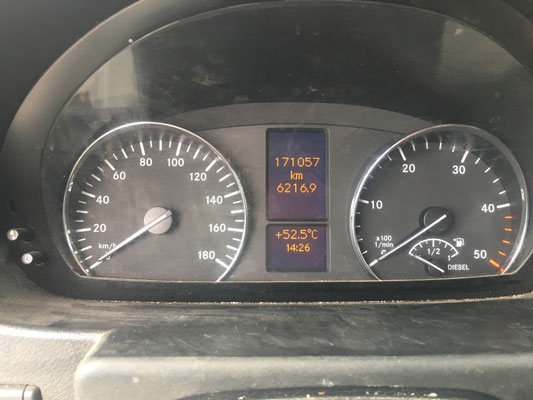 Die Strecke ließ sich insgesamt wirklich gut fahren. An einer Stelle wurden die Fahrzeuge für 10 km auf eine holprige und sandige Piste seitlich umgeleitet. Es staubte ohne Ende und die LKWs krochen im Schneckentempo voran. Kurz vor uns hat sich dann ein LKW in einer sandigen Bodenwelle festgefahren, wir konnten noch vorbei, danach ist vermutlich ein ordentlicher Stau entstanden. Glück gehabt.