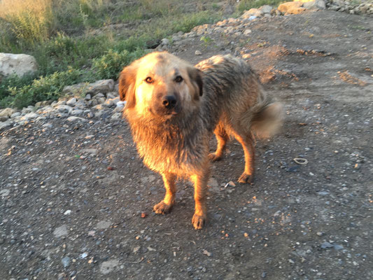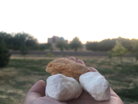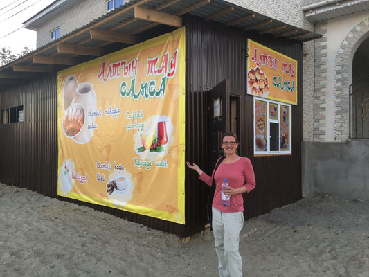 Wir werden wieder einmal neugierig betrachtet und unserem benachbarten PKW-Besitzer fällt bei näherer Betrachtung unseres Wohnmobils sogar auf, dass die Windschutzscheibe und die Scheibe in der Fahrertür nicht das gleiche Baujahr aufweisen. Vanja findet ebenfalls wieder schnell neue Freunde, wir machen diverse Fotos und bekommen dann von einer Mutter und ihrer kleinen Tochter noch als Gastgeschenk mehrere Kugeln Kurt geschenkt. Unser erster Kontakt mit den kleinen getrockneten Quarkbällchen, die es hier in allen Stan-Ländern gibt! Jippieh! Gespannt beiße ich hinein, stelle fest die sind ziemlich hart, eher steinhart und fallen für mich geschmacklich eher in die Kategorie „gewöhnungsbedürftig“. Wer eine bessere Beschreibung zum Geschmack von Kurt lesen möchte, klickt einfach auf den Link zum Blog von Uli und Aika unter http://reiseblog.ulaika.de/kurt-getrocknete-ud-salzige-quarkbaellchen. Wir heben uns unsere Kurts einfach mal für schlechte Zeiten auf. Dazu gab es noch einen deutlich fluffigeren, bräunlichen Käse, dessen Name ich mir aber leider nicht so gut merken konnte.