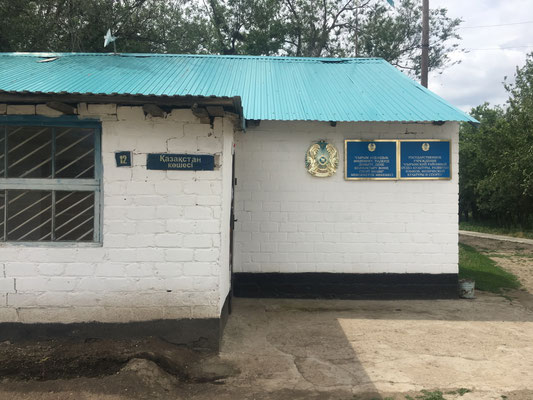 Wir müssen allerdings kurz drauf ja noch mal raus für die kasachische Einreise. Dies ist mal wieder eine Grenze, an der Beifahrer getrennt durch die Kontrolle gehen und Jens sich alleine um das Fahrzeug, Vanja, sich und die Fliegen kümmern muss. Ich hingegen stehe kurz drauf dann schon hinter dem Schlagbaum und werde direkt von drei Frauen (vermutlich) in Vollvermummung und großer Sonnenbrille umrundet. Irritierend aber aufgrund der Fliegenerfahrung nicht ganz so erschreckend. Dollar und Euro werden gesucht - Geldwechsel auf den ersten fünf Metern in Kasachstan.
