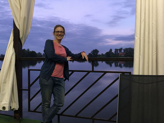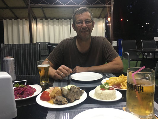 An der Rezeption versuchen wir noch unser Registrierungsthema zu klären, werden dann aber an den englischsprechenden Bewohner von Häuschen Nr. 3 verwiesen. Der wollte sich heute registrieren gehen und wird uns somit bestimmt weiterhelfen. Zimmer Nr. 3 ist momentan allerdings nicht da und so drehen wir eine gemütliche Runde mit Vanja und gehen dann hier im Restaurant essen. Zum Nachtisch gibt's dann noch eine Portion Cholera-Schluckimpfung - lecker ;-)