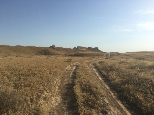 Unser heutiges Tagesziel ist die Stadt Atköbe in 700 km Entfernung von unserem Steppenparkplatz Transit aus.