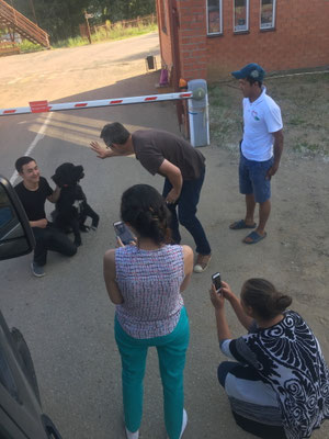 Kaum ist Vanja vor der Tür des Womos ist sie auch schon umringt von Kindern. Berührungsängste gibt es keine und wir hören das erste Mal nur noch kasachisches Stimmwirrwarr. Das klingt irgendwie doch sehr anders und aufgrund der Kehl- und Zischlaute irgendwie ein wenig abgehackt. Irgendwie witzig dass wir schon zig Kilometer hier im Land sind und erst jetzt auch die Landessprache auf der Straße gesprochen wird. Wir erfahren so, dass die Kinder in der Schule Russisch und Englisch lernen und so klappt’s doch ganz gut mit der Verständigung.