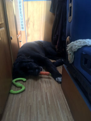 Wie auch die meisten LKW-Fahrer sind wir früh auf den Beinen und machen uns auf den Weg. Erst aber verabschieden wir uns natürlich von unseren Übernachtungswirten. Nicht nur von den netten Damen hinter der Theke, sondern auch von unserem nächtlichen Aufpasser, der uns doch irgendwie spannender als andere fand und der Hofhund bekommt auch noch seine Streicheleinheiten. Bisher waren wir ja immer etwas skeptisch und haben eher nicht auf LKW–Parkplätzen übernachtet, aber vielleicht merken wir uns das einfach für die weitere Reise.