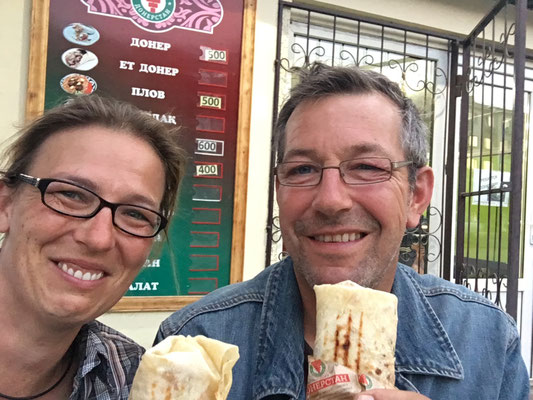 Nicht weit von unserem Parkplatz finden wir noch eine Schaschlikbude, welche uns leckere Spieße grillt. Vielleicht nicht für jeden das typische Hochzeitstagsessen, aber zu uns passt’s ja irgendwie. Und so werden wir unseren zehnten Hochzeitstag sicherlich nicht so schnell vergessen!